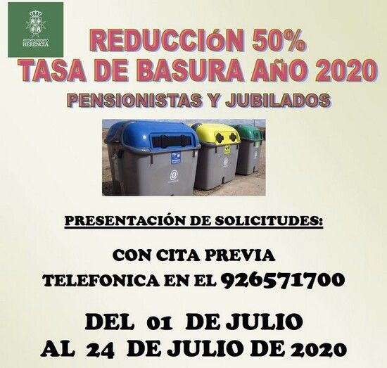 Como en los últimos cuatro años, los mayores y pensionistas de Herencia podrán beneficiarse de una reducción del 50 % en la tasa de recogida domiciliaria de basuras y residuos sólidos, lo que supone una ayuda para las economías domésticas.