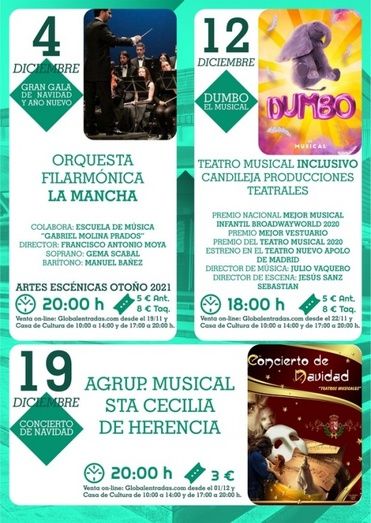 Con la mejora de la situación sanitaria y sin restricciones de aforo, vuelve con más fuerza la programación otoño-invierno del Auditorio Municipal de Herencia, con más de una decena de eventos que sitúan a la localidad en centro de cultura y ocio.