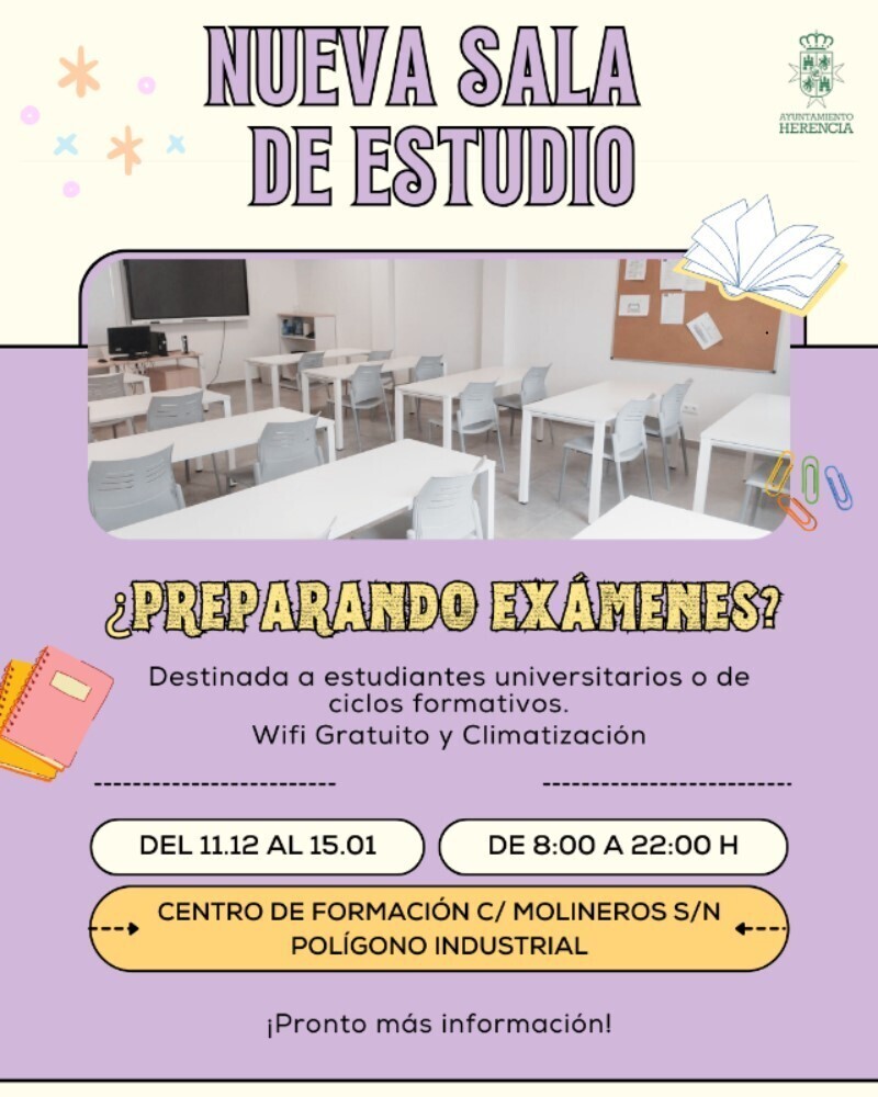 El Ayuntamiento de Herencia habilita una sala para el estudio durante las vacaciones de Navidad