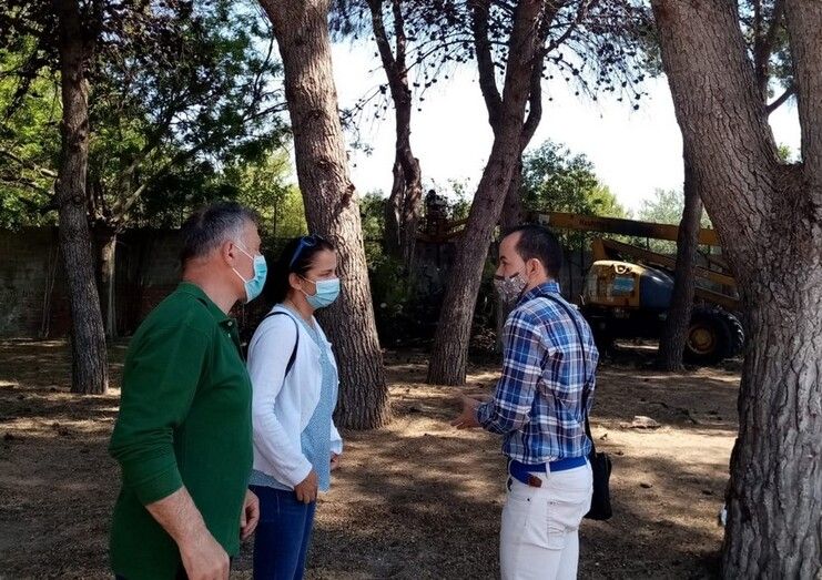 De forma paralela, a las primeras acciones para la construcción del edificio multiusos, se está trabajando en la poda y saneamiento de las zonas verdes en el interior y en las zonas cercanas al recinto de la Piscina Municipal como el conocido Parque de la Serna, con el fin de permitir la entrada de la luz, ya sea la solar o la del alumbrado de las farolas existentes, para aportar la iluminación necesaria al césped y plantas de menor embergadura y convertir los espacios de paseo en visibles y transitables para su uso y disfrute.