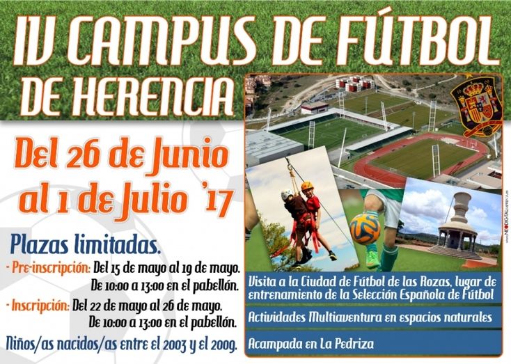 Un año más y por cuarto año consecutivo, el Herencia C.F. en colaboración con el Ayuntamiento de Herencia, organiza del 26 de junio al 1 de julio el Campus de Fútbol Herencia. Una semana de actividades multiaventura y de prácticas deportivas para que niños y niñas disfruten al máximo de esta experiencia única.