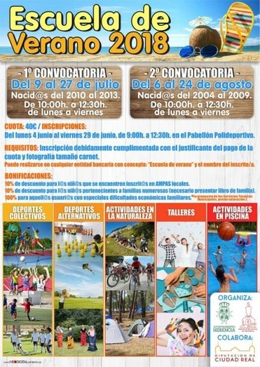 El 4 de junio se abre el periodo de inscripciones para la Escuela de Verano 2018 de Herencia