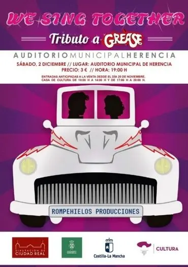 Rompehielos Producciones de Daimiel ha ganado, por segundo año consecutivo, el primer premio de grupos profesionales. Lo ha hecho por su obra “We sing togheter” (Tributo a “Grease”) que representará a partir de las 19 horas en el Auditorio de Herencia. Las entradas ya están a la venta, en la Casa de Cultura a 3 euros.