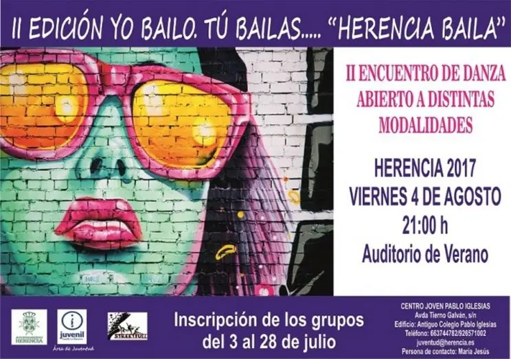 El Ayuntamiento de Herencia a través del área de Juventud y en colaboración con la Asociación Juvenil Street Full de Herencia, convoca el II Encuentro de Danza “Yo bailo, tú bailas... Herencia baila” el próximo viernes 4 de agosto a las 21:00 horas en el Auditorio de Verano.