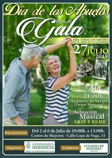El Ayuntamiento de Herencia en colaboración con el Consejo de Mayores, presenta la II Cena de Gala para homenajear y celebrar con los mayores del municipio el Día de los Abuelos. Será el próximo 27 de julio en el Auditorio de Verano.
