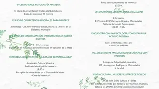 Como cada año, en torno al 8 de marzo, el Ayuntamiento de Herencia, a través del área de Bienestar Social, ha programado una serie de eventos a lo largo de las próximas semanas, para conmemorar el Día Internacional de la Mujer.