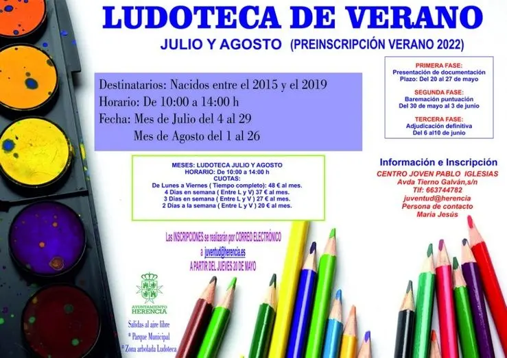 De cara a los meses estivales de julio y agosto, y para ofrecer a los más pequeños una alternativa de ocio y aprendizaje, el Ayuntamiento de Herencia amplía el servicio de ludoteca también en verano.