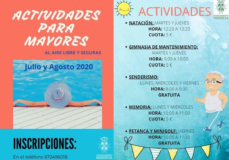 El Ayuntamiento de Herencia reanuda para los mayores de la localidad una serie de actividades para continuar con el ejercicio físico y mental después de estos meses tan dificiles. Estas actividades se realizarán al aire libre y con todas las medidas de seguridad para su buen disfrute.