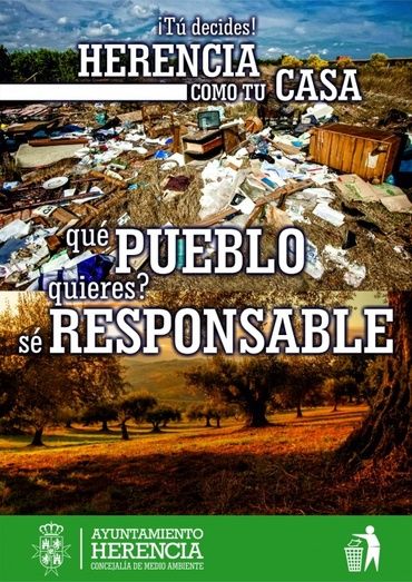 Continúan apareciendo enseres abandonados en los contenedores o peor aún, en caminos y parajes del medio rural que a nadie le gusta ver cuando salimos a pasear por el campo y sus parajes naturales. Esta campaña de sensibilización ambiental busca incidir en la población, para que entre todos, logremos un municipio más limpio y agradable para vivir. Son las palabras con las que se ha referido el concejal de Medio Ambiente Gabriel Carrero Díaz-Meco en la presentación de esta nueva campaña que no solo irá acompañada con la colocación de carteles informativos, sino que además, se reforzará con la emisión de vídeos para informar a la ciudadanía de las buenas prácticas para mantener limpio nuestro entorno, sobre el reciclaje y el cuidado del Medio Ambiente. Serán proyectados antes de las sesiones de Verano de Cine, en el Centro Joven “Pablo Iglesias y además se compartirán semanalmente a través de las redes sociales del Ayuntamiento. “Ya hemos hecho varios planes de choque para poner el municipio al día y, sin duda, necesitamos la complicidad de la ciudadanía para mantener una Herencia limpia de la cual nos sintamos orgullosos. A nadie le gusta ir al monte, al parque o la plaza, y encontrar botes, bolsas… Seamos responsables ¡Tú decides! Herencia como tu casa".