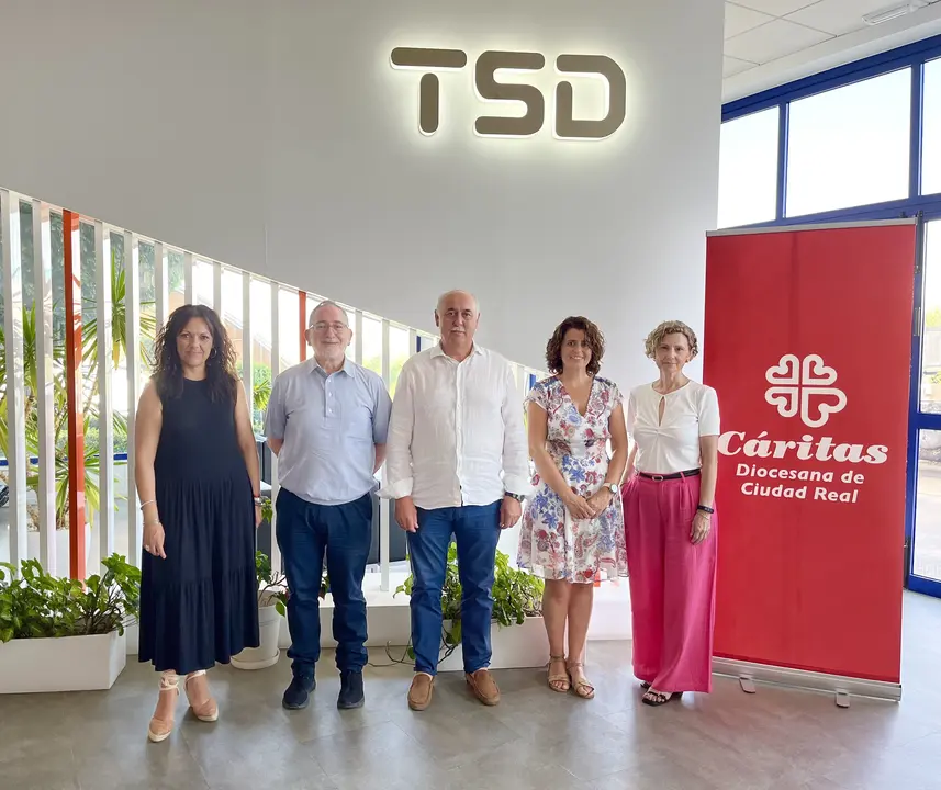 El pasado jueves, el Grupo empresarial TSD International, de la mano de su presidente Antonio Ramírez; Belén Díaz, responsable de RRHH; junto con el párroco de Herencia, Julián Martín; Sagrario Sánchez, técnico de Intermediación y Mari Carmen Ruiz,coordinadora del Programa de Empleo de Cáritas Diocesana de Ciudad Real, firmaban un acuerdo por el cual ambas entidades colaborarán estrechamente en el programa de empleo que Cáritas lidera para ayudar a colectivos desfavorecidos.