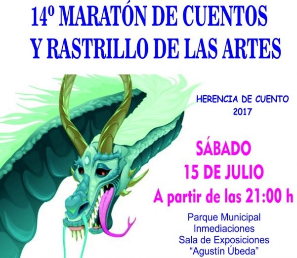 Un año más el Ayuntamiento de Herencia, desde la BPM Miguel de Cervantes y el área de Juventud, organiza su ya tradicional Maratón de Cuentos y Rastrillo de las Artes. Una cita obligada para todas las personas aficionadas a la narración oral, y para los que aún no la conocen y quieren disfrutar de la palabra y de las emociones. Será a partir de las 9 de la noche en el Parque Municipal.