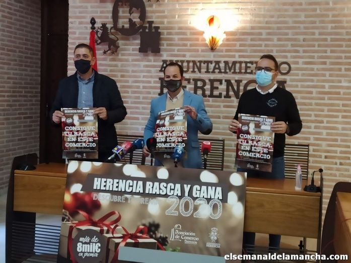 Ayuntamiento de Herencia y Asociación de Comercio han puesto en marcha una campaña de apoyo al comercio local de cara a las fiestas navideñas, un Rasca y Gana que repartirá más de 8.000 euros en premios, tal y como han informado este lunes en rueda de prensa los responsables de la misma, el concejal de Promoción Económica, José Manuel Bolaños, el alcalde del municipio, Sergio García-Navas y el presidente de la Asociación de Comercio, Jesús Ramírez.
