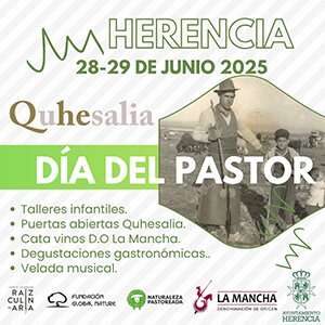 Finalmente, a partir de las 21 horas, tendrá lugar el acto principal del Día del Pastor, consistente en una cata de vinos de la D.O. La Mancha, maridados con distintos productos locales relacionados con la ganadería y la agricultura. Un espectáculo para los sentidos que contará con la participación de Jesús Iván Anaya, chef de Raíz Culinaria afincado en Herencia, ganador del III Campeonato Oficial de Tapas y Pinchos de Hostelería de España 2025, quien deleitará a los asistentes con distintas elaboraciones gastronómicas, recetas pastoriles de otros tiempos adaptadas a las exigencias y tendencias actuales. Una noche para disfrutar en Quhesalia que además contará con la actuación musical en directo del grupo "Alquimia", conLaura Abengoza y Jaime Gómez (el precio 5 euros, con inscripción previa).