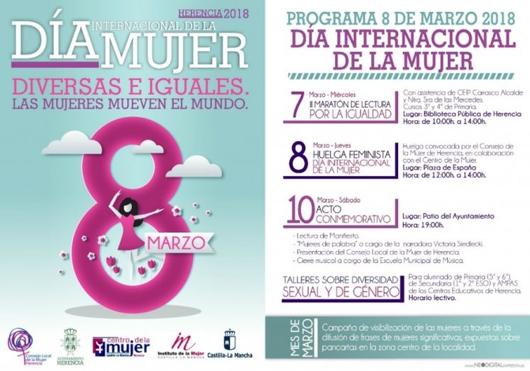 El Centro de la Mujer del Ayuntamiento de Herencia ha dado a conocer la programación completa en torno a la conmemoración del 8 de marzo, Día Internacional de la Mujer.