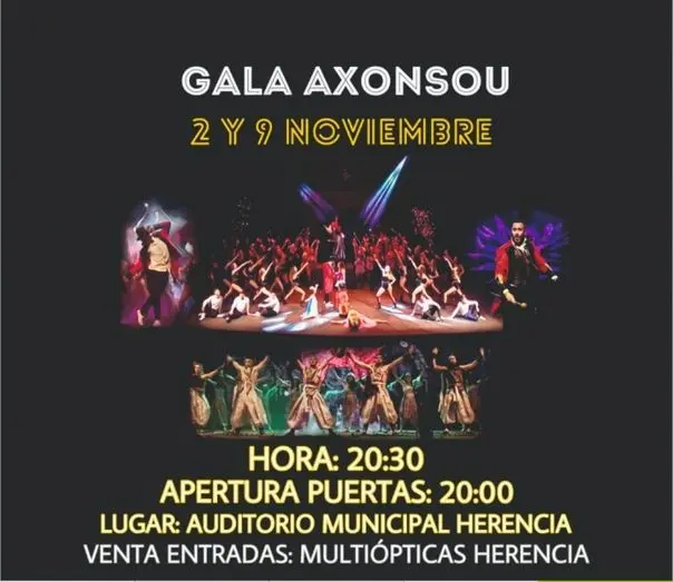 Tras el éxito cosechado en las diferentes galas de años anteriores, la asociación Axonsoe de Herencia se dispone a celebrar una nueva edición de la misma. Este año llevarán a cabo un pase el día 2 y otro el 9 de noviembre a las 20.30h, para los que ya se han agotado las entradas en la primera semana de salir a la venta.