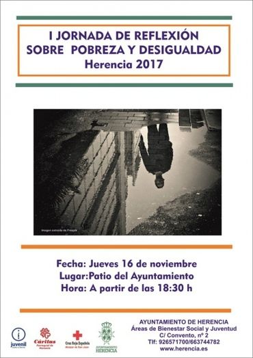 Este jueves 16 de noviembre, en el Patio del Ayuntamiento de Herencia, la Mesa por la Inclusión Social, dentro de la I Jornada de Reflexión en situaciones de pobreza y desigualdad, organiza dos ponencias para debatir y conocer los últimos datos en torno a la situación social de España.