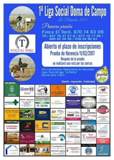 Organizada por la Finca el Toril y con la colaboración del ayuntamiento, Herencia acogerá el próximo sábado 11 de febrero la primera prueba de la Liga Social Doma de Campo “La Mancha”. Se trata de un evento de carácter multidisciplinar que girará en torno al mundo ecuestre y el campo, y que tendrá como escenario el paraje de la Pedriza. Se trata de un espectáculo único en el municipio que dará comienzo a las 11 de la mañana.