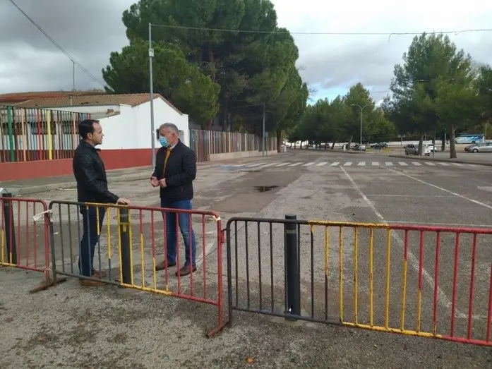 El alcalde de Herencia, Sergio García-Navas, y el concejal de Deportes, Francisco Gallego de la Sacristana, han visitado este miércoles las obras que se están llevando a cabo para la peatonalización definitiva de los viales aledaños al colegio Carrasco Alcalde y a las zonas deportivas.