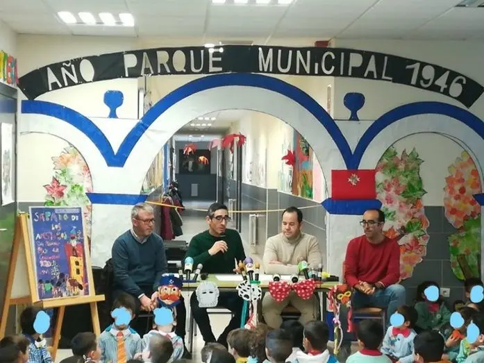 El cartel se ha presentado este miércoles 5 de febrero, como no podía ser de otro modo, en el colegio Carrasco Alcalde. Además fueron los propios alumnos de Educación Infantil, acompañados por sus profesoras, los que explicaron en una original rueda de prensa en qué se han basado para hacer su diseño y qué representa para ellos.