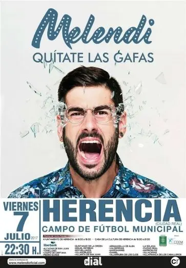 Melendi llega a Hernencia en concierto dentro de su gira «Quítate las gafas». Se trata de uno de los artistas con mayor éxito en el panorama de la musica actual española y visitará La Mancha en una gira que arrancó el pasado 2 de febrero en América y que ha comenzado su recorrido por la geografía española, haciendo una parada en La Mancha este 7 de julio.
