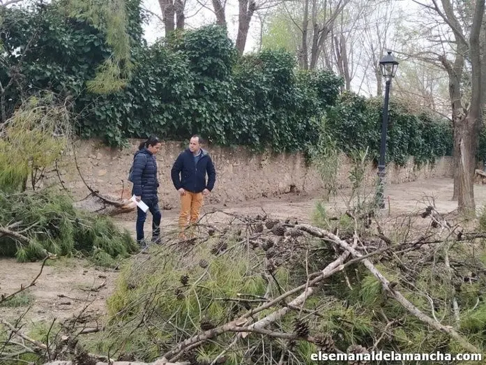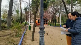 El alcalde de Herencia, Sergio García-Navas, y el concejal de Urbanismo, Francisco Gallego de la Sacristana, han visitado las obras que se están llevando a cabo en el Parque Municipal, objeto actualmente de una importante actuación de remodelación y mejora del espacio.