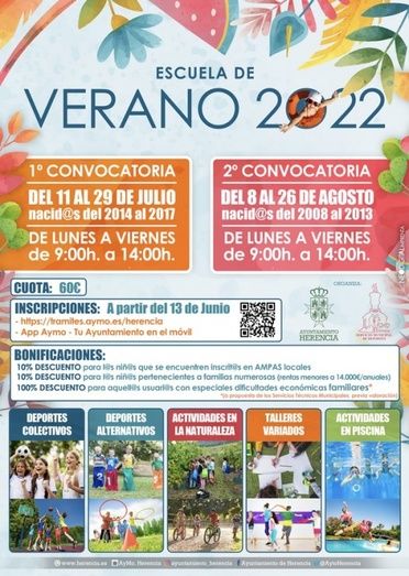 En marcha una nueva edición de la Escuela de Verano organizada por el Servicio Municipal de Deportes del Ayuntamiento de Herencia para esta temporada estival. Una actividad cuyas inscripciones comenzarán el próximo lunes 13 de junio de manera telemática a través de la App móvil o mediante el siguiente enlace https://tramites.aymo.es/herencia.