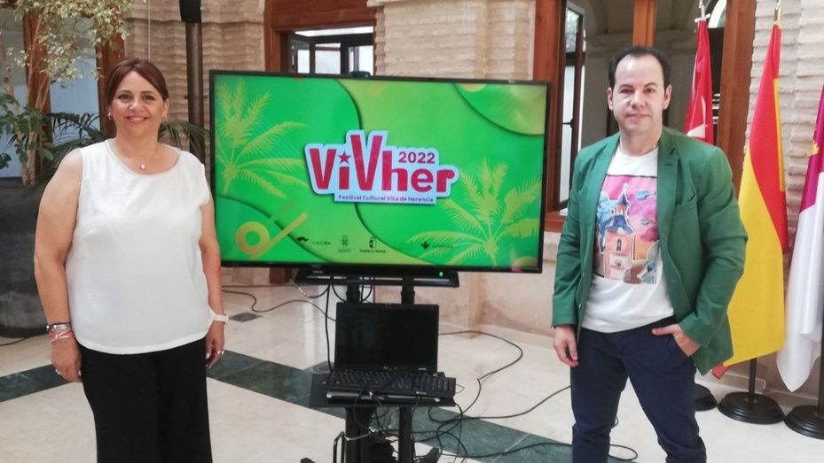 El alcalde de Herencia, Sergio García-Navas y la concejala de Festejos, Inmaculada Diaz-Flores han presentado esta mañana la programación de VIVHER, Festival Cultural Villa de Herencia que vuelve este verano con actividades para todos los gustos y edades, con la plaza de España como epicentro y con alguna novedad (como el paraje de San Cristóbal, que se incorpora a los espacios abiertos donde se llevarán a cabo las actividades).