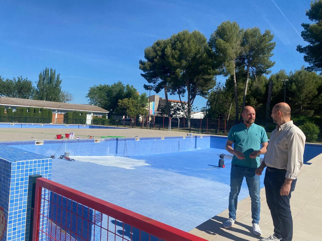 Unas labores que han sido revisadas por Serafín Tajuelo, concejal de Deportes, y José Manuel Aragonés, responsable del área de Obras y Jardines, que han estado visitado las instalaciones para ver el desarrollo de estos trabajos de limpieza y pintura, además del mantenimiento de la instalación de fontanería y el llenado y puesta a punto de los tres vasos.
