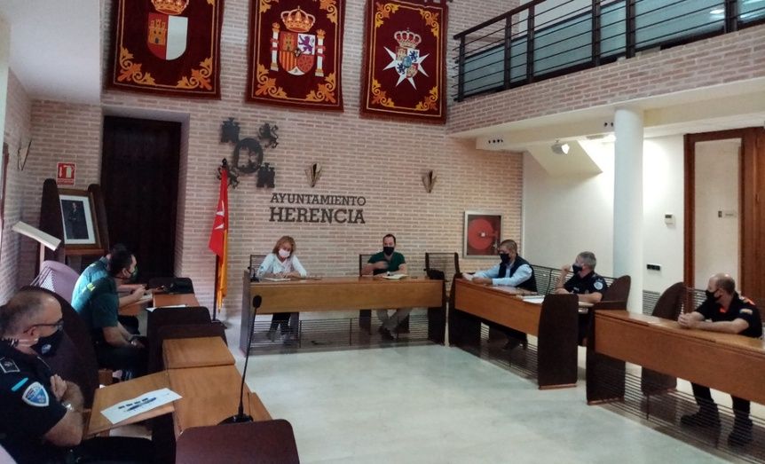 El Ayuntamiento de Herencia ha albergado esta mañana la reunión de la Junta Local de Seguridad prevista, con asistencia de los Cuerpos de la Guardia Civil, Policía Local y Protección Civil además del alcalde, Sergio García-Navas y el concejal de Seguridad Ciudadana, José Manuel Bolaños, para establecer el protocolo que se desarrollará durante los días de Feria, a pesar de no celebrarse actos festivos, excepto los programados, con carácet religioso, el próximo jueves cumpliendo las medidas sanitarias de aforo y distancia social.