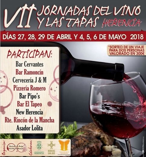 Faltan solo unos días para que de comienzo en Herencia la VII edición de la Ruta del Vino y la Tapa, que se celebrará durante los días 27, 28, 29 de abril y 4, 5, 6 de mayo, organizada por la Asociación Amigos del Vino, en colaboración con el Ayuntamiento de Herencia y la Cooperativa Vitivinícola San José.