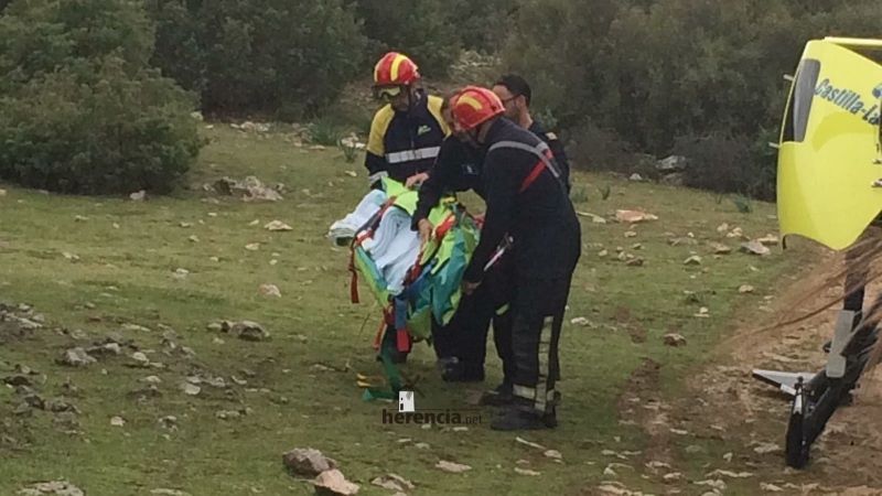 Una mujer de 35 años de edad ha tenido que ser rescatada y trasladada en helicóptero hasta el hospital Mancha Centro de Alcázar de San Juan, tras sufrir un accidente leve en la sierra de los pozos del agua de Herencia.