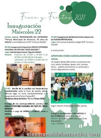 Actos que darán inicio este miércoles, 22 de septiembre, con el tradicional pregón de Feria a cargo de un joven, hijo y nieto de herencianos, el actor y cantante Críspulo Cabezas, una persona que ha acogido de muy buen grado esta petición por parte de la Concejalía.