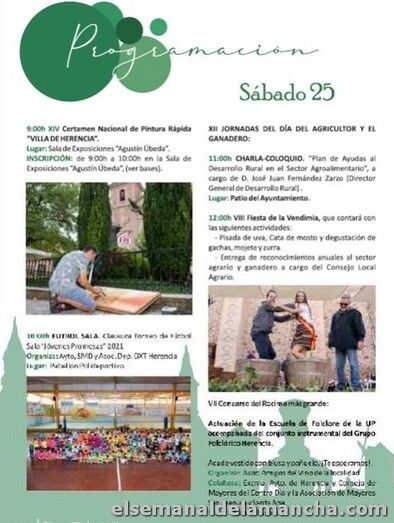 Recordar también, según ha explicado la concejala, que una jornada muy especial será la del día 25, sábado, con la celebración de las XII Jornadas del Día del Agricultor y el Ganadero, donde se incluye la Fiesta de la Vendimia con la pisada de uva y el Premio al racimo más grande.
