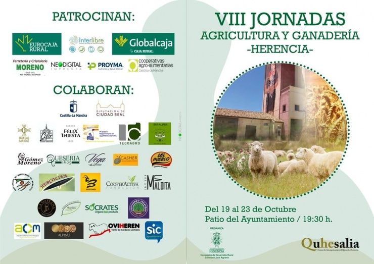 La concejalía de Desarrollo Rural del Ayuntamiento de Herencia, a través del Consejo Local Agrario, presenta las VIII Jornadas de Agricultura y Ganadería, que se celebrarán del 19 al 23 de octubre, gracias a la colaboración y patrocinio de un gran número de empresas, así como de la Diputación Provincial de Ciudad Real y la Junta de Comunidades de Castilla-La Mancha.