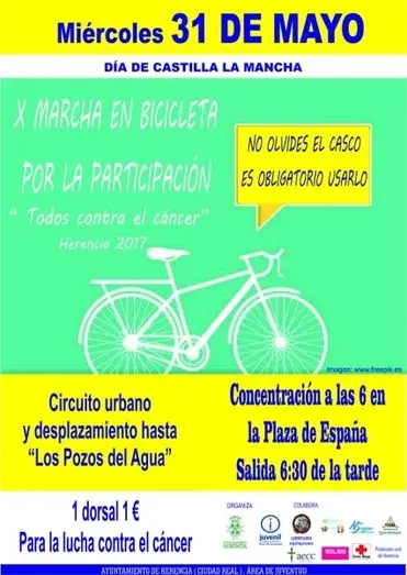 Bajo el lema “Un dorsal, 1 € contra el cáncer”, para realizar esta actividad, estarán presentes distintos grupos y asociaciones para velar, una vez más, por el éxito y buen desarrollo de la marcha. En esta ocasión colaborarán el Club Ciclista Amigos del Plato Grande, Seguros Soliss, la Asociación contra el Cáncer, la Asociación Cultural Jarra y Pedal, la Asociación Cultural Barco de Colegas, New Droguer, Cruz Roja y Protección Civil de Herencia.