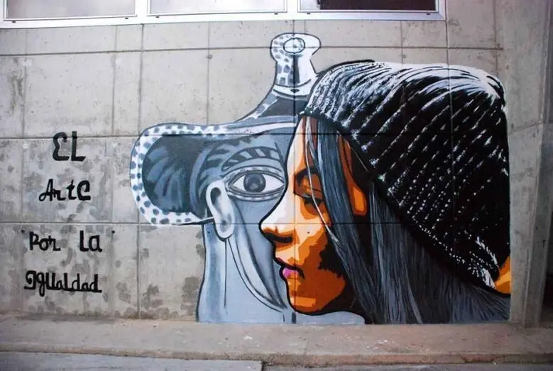 Franz ha pintado un mural por día comenzando por el IES Alonso Quijano con una obra que lleva por título “El Arte por la Igualdad”. En él se representa una de las obras de Picasso, "Mujer con sombrero", como fondo de un retrato de perfil de una joven con gorro. “Utilizando a un referente del arte cubista, se refuerza el mensaje de otra intervención en defensa de la igualdad de derechos entre hombres y mujeres”, explicaba Campoy.