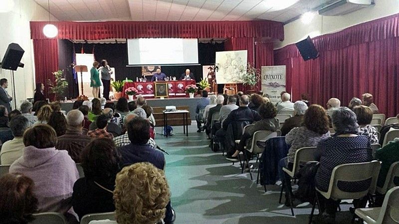 El alcalde de Quero (Toledo), Rubén Torres, en un salón de actos lleno de público, ha agradecido a los autores del libro ilustrado "La verdadera historia de Persiles y Sigismunda" con el Molino de plata realizado especialmente para premiar a los participantes en esta edición. En el mismo acto han obtenido el reconocimiento el presidente de la Sociedad Cervantina de Alcázar de San Juan, Luis Miguel Román, por su libro Las aventuras de Don Quijote en Sierra Morena.