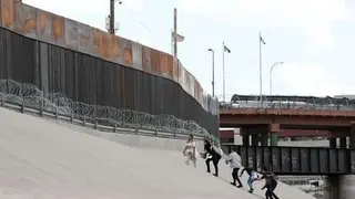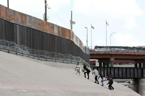 Pie de foto: Migrantes caminan frente al muro fronterizo entre México y Estados Unidos, cerca del Puente Internacional Santa Fe, en Ciudad Juárez, estado de Chihuahua, México, el 11 de mayo de 2019.