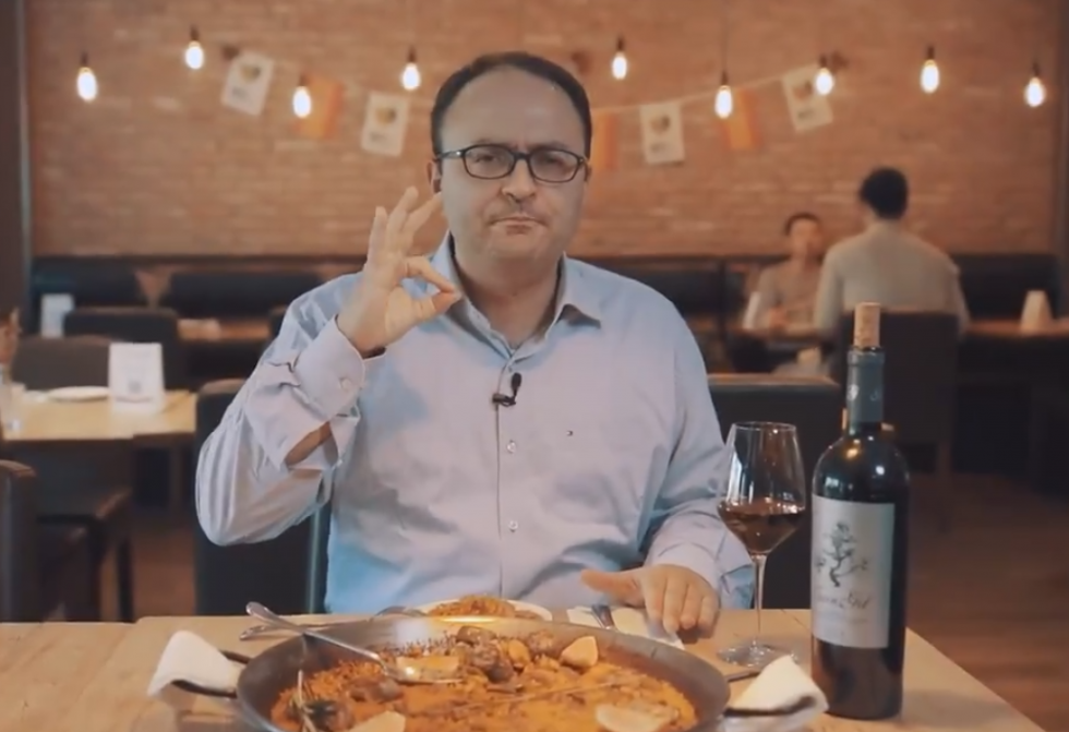 BEIJING, 4 nov (Xinhua) -- En un restaurante español de Beijing, Niajo, Alberto Lebrón expresa su satisfacción despúes de haber probado una auténtica paella valenciana.