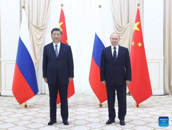 Xi se reunió con Putin en el Complejo Forumlar Majmuasi en Samarcanda para intercambiar puntos de vista sobre las relaciones China-Rusia y acerca de temas internacionales y regionales de interés común.