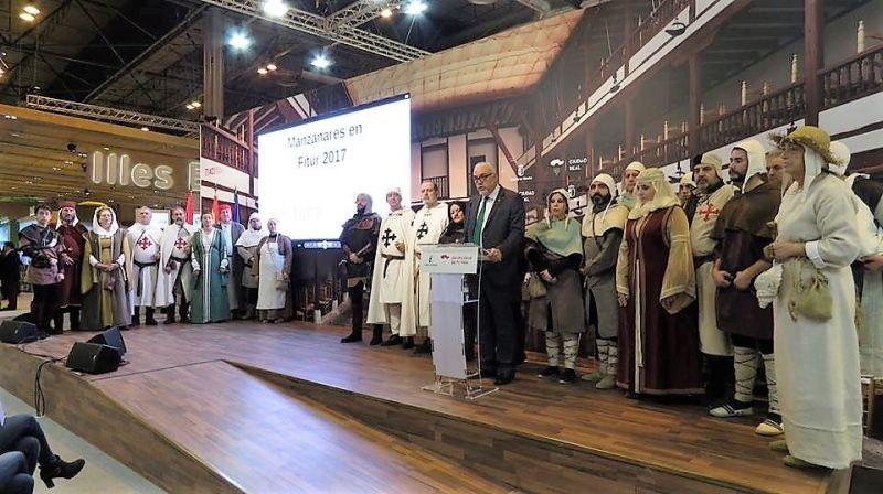 Asimismo dos de los personajes que representan el espíritu de las Jornadas Medievales para todo un pueblo, Antonio Bermudez y Juan Criado, intervinieron en el escenario acondicionado de Castilla-La Mancha en FITUR ante la gran afluencia de público y medios de comunicación. En este caso Antonio Bermudez señalaba que las jornadas histórico-turísticas, pretenden evocar la construcción del Castillo de llanura y del lugar habitado que surgió a su sombra y amparo. También la formación inmediata de la Encomienda de Calatrava y Manzanares a raíz de la batalla de las Navas de Tolosa, una intervención de Bermudez que seguidamente contó en verso. Por parte de Juan Criado, manifestaba que después de cinco años de andadura de las Jornadas Medievales, ya se han convertido en un referente provincial, estando convencidos que en unos años y al ritmo que se está trabajando actualmente, las Jornadas Medievales de Manzanares serán un referente a nivel regional. Criado lanzaba una invitación para que todo el mundo asista a este particular evento, informando que durante la celebración a principios del mes de octubre, el visitante encontrará y disfrutará de actividades como bailes, tiro con arco, juegos, tabernas medievales, mercados medievales, gastronomía y un amplio y variado abanico de actos relacionados con las Jornadas Medievales.