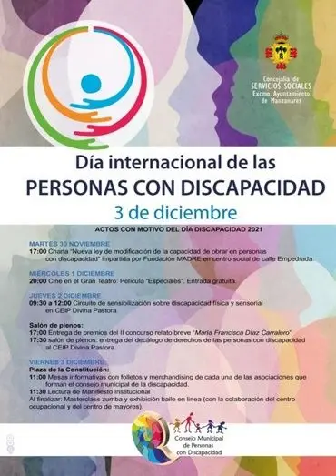 El Ayuntamiento de Manzanares, a través del Consejo Municipal de Personas con Discapacidad, ha organizado una charla impartida por Fundación MADRE; la proyección de la película ‘Especiales’; un circuito de sensibilización; la entrega de premios del concurso de relato breve 'María Francisca Díaz Carralero'.