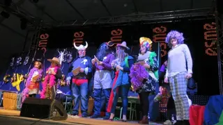 La noche del viernes en la carpa continuó con la actuación del grupo de Puertollano 'Vaya Trola', que divirtió al público con la ironía y sátira de su chirigota titulada 'Que sea lo que Dios quiera', con todos sus componentes, de blanco celestial, disfrazados de Dios. La pista se despejó después de silla para disfrutar del gran espectáculo musical de la Orquesta "Esmeralda", que amenizó esta segunda noches de bailes en 'La Pérgola', donde hubo buen ambiente y destacada presencia de máscaras.