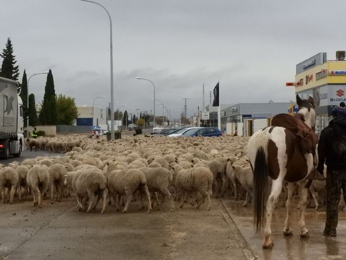 Alrededor de las 13 horas, un rebaño de más de 2.000 ovejas ha atravesado Manzanares por su recorrido de las cañadas reales Conquense y Soriana Oriental hacia Mestanza. Se trata de una tradición milenaria, la trashumancia, estrechamente vinculada a Manzanares, donde convergen la Cañada Real Soriana y la Real Conquense.