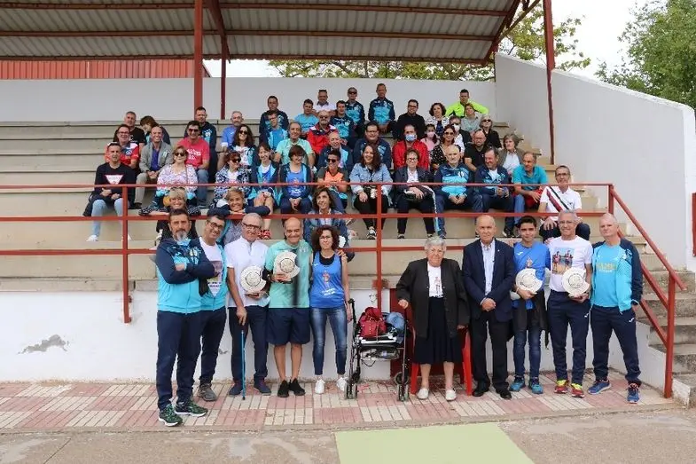 El Club Maratón Altomira ha querido rendir un homenaje póstumo a su socio, Asterio Muela, recientemente fallecido, con un acto que se celebraba en las pistas de atletismo, al que asistía la familia del atleta que recibía una placa conmemorativa de la carrera.