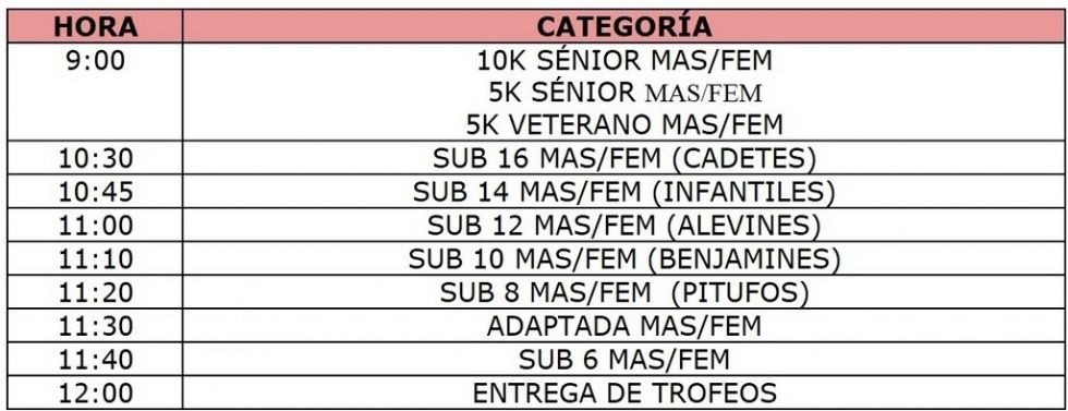 Nota: La organización se reserva el derecho de modificar el horario de las categorías menores (de 10:30 en adelante) dependiendo del n° de inscritos en cada categoría y género, pudiendo desdoblar por género para el mejor desarrollo de la misma.