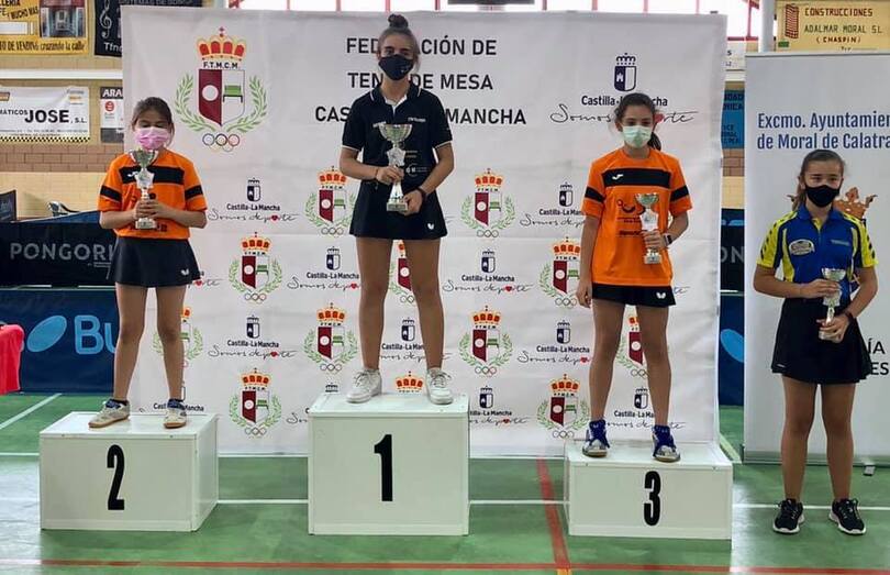 Las todavía benjaminas Paula Sánchez-Mateos (subcampeona) y Carla Hernández (tercera) subieron de nuevo al pódium en el Campeonato Regional Escolar de Tenis de Mesa celebrado el pasado sábado por la mañana en Moral de Calatrava (Ciudad Real), esta vez en categoría infantil.