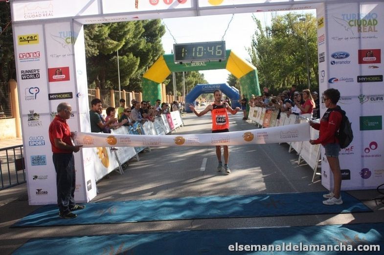Francisco Serrano, con un ritmo de 3:21 el km, sorprendió al resto de atletas, incapaces de seguirle e hizo la prueba en solitario, logrando más de 1 minuto y medio de ventaja sobre el segundo clasificado en línea de meta. El atleta con la camiseta del CA Albacete, manifestó tras cruzar la línea de meta “ha sido una gran mañana deportiva, con mucha gente por las calles, es una media rápido con tramos en los que puedes recuperar”, “llevó corriendo desde el 2012 y empezó en la Carrera de El Porvenir, aquí en Alcázar” reconoció.
