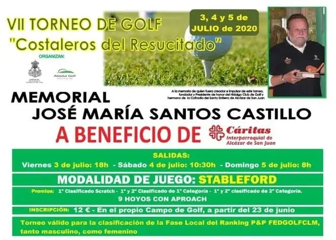 La séptima edición de este Torneo de Golf “Costaleros del Resucitado” se hará un año más en memoria de José María Santos, hermano e impulsor del torneo. Los costaleros quieren agradecer “a todos nuestros patrocinadores, por todo el camino recorrido junto a nosotros y los que aún en estos tiempos difíciles se han unido. Gracias”.