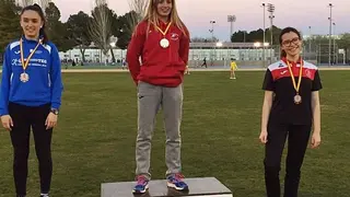 Otra atleta que consiguió subir al pódium y conseguir la medalla de bronce fue la lanzadora alcazareña Inés Alaminos Borrallo en la prueba de lanzamiento de peso (6,96 metros) en categoría cadete.